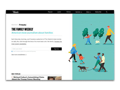 A years ago I worked at The Atlantic. I worked on a variety of projects including UX for our CMS and internal tooling, expanding the design system, interaction design for subscriptions, and layout design for sponsorships.